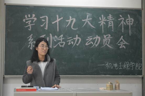 认真学习宣传贯彻党的十九大精神系列活动做了详细的的安排,并提出相应要求:各班团支部要从原原本本认真学原文做起,认真学习党的十九大报告和党章,着重把握“关于在全校团组织集中开展认真学习宣传贯彻党的十九大精神的通知”文件中的10个方面,深刻领会十九大精神内涵;团干部要带头学习、完整领会党的十九大精神,当好团员青年的表率,深入基层开展宣讲;基层团组织要开展专题学习会,结合自身实际,学习贯彻党的十九大精神。学生会主席陈鑫和团委副书记刘浩浩分别对开展十九大相关活动及各班团支部开展团日活动做出了相应安排。