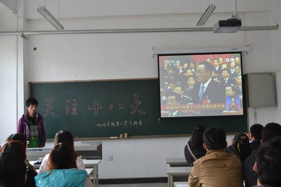 组织学生党员、入党积极分子及第45期党课培训班全体学员在4B-401、501、529观看十八大开幕式并进行讨论。