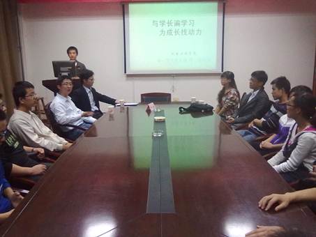 学生党支部书记程文冬老师和三位本校毕业的学长受邀参加此次座谈会。会上三位学长详细介绍了自身的工作或考研经历,他们对走入大三的同学们的学习、生活以及毕业后的发展方向提出了很多宝贵的意见和建议。