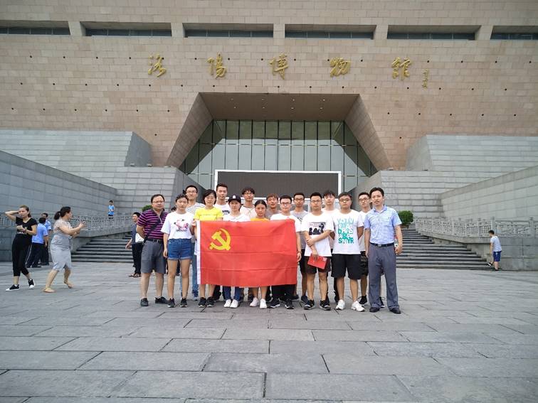 2018年7月12日下午,西安工业大学洛阳一拖实习队临时党支部的15名学生党员和2名学生干部在张晖、赵鹏、叶建老师的带领下前往洛阳博物馆参观学习。