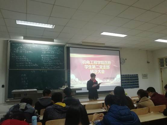 学生第二党支部转正及党员发展大会在教2-402顺利召开,主持本次会议的是学生第二党支部书记高珊老师,学生第二党支部全体党员同志及积极分子出席本次会议。