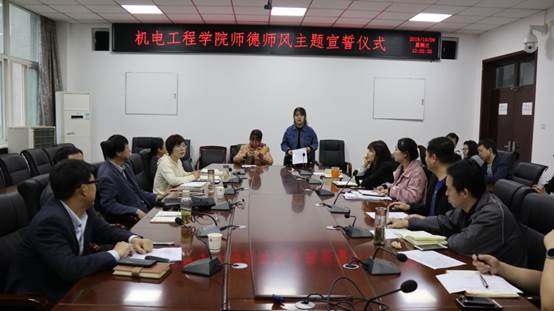 师德师风建设月活动的具体安排。随后,教师代表苏米兰带领教职工面对国旗郑重宣誓,教师宣誓活动在庄严、隆重的氛围中进行。宣誓过后,参会教师陆续在《西安工业大学教师承诺书》签字。