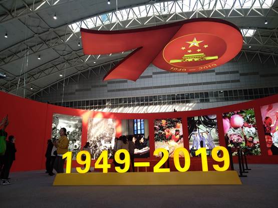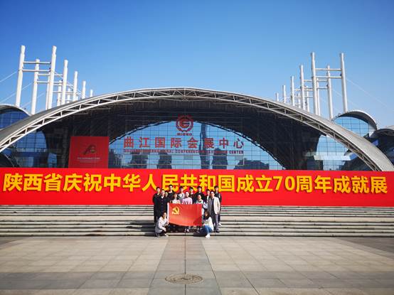 学生第一党支部全体成员在曲江国际会展中心门口集合,由张晖、刘昊雨老师带领参观学习“陕西省庆祝中华人民共和国成立70周年成就展”。