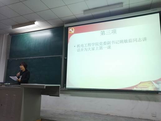 大会伊始,全体起立,奏唱国歌。学生党总支副书记薛鹏宣布课程纪律及要求等安排。进一步做好本期培训工作,使同学们学有所得、学有所成,党委副书记姚敏茹书记提出以下四点要求:牢记党校性质,提高对学习的认识;明确培训目标,加强党的学习;严格遵守党校纪律,提高学习质量;理论联系实际,做到知行合一。希望学员们通过在党课培训班的学习,可以加深学员对党的认识,端正入党动机,坚定入党决心,从思想和行为两个方面严格要求自己,争取早日加入党组织。并寄予了在场同学们深切的期望。