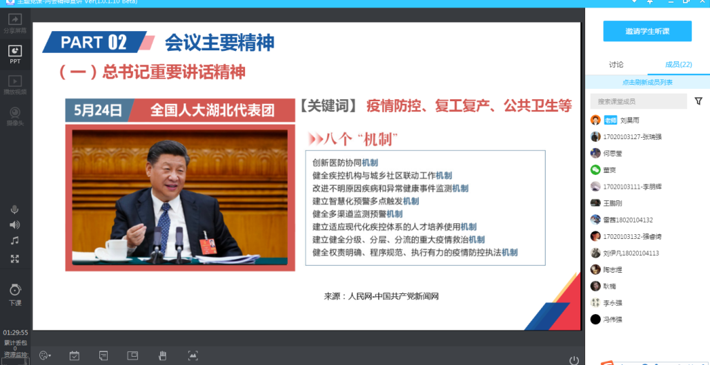 学生第九党支部线上开展“学习两会精神 牢记青年使命”主题党日活动,此次活动由支部书记刘昊雨主持,支部全体党员参加。
