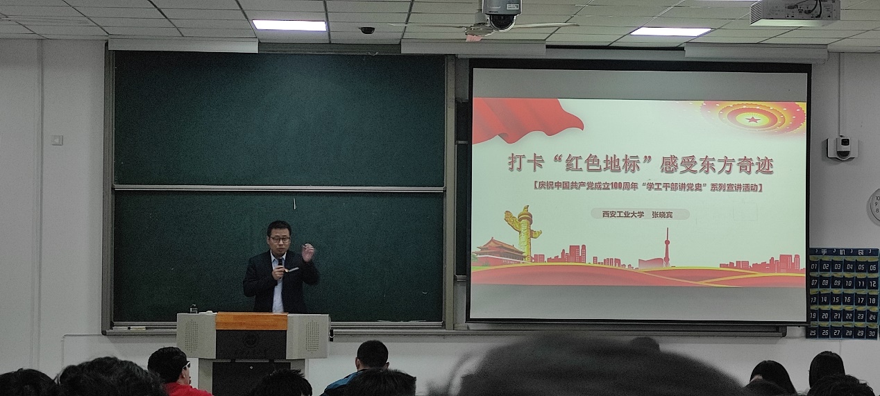 在教1-104开展了西安工业大学“学工干部讲党史”系列宣讲活动。此次讲座邀请艺术与传媒学院辅导员张晓宾老师主讲,足球投注网站