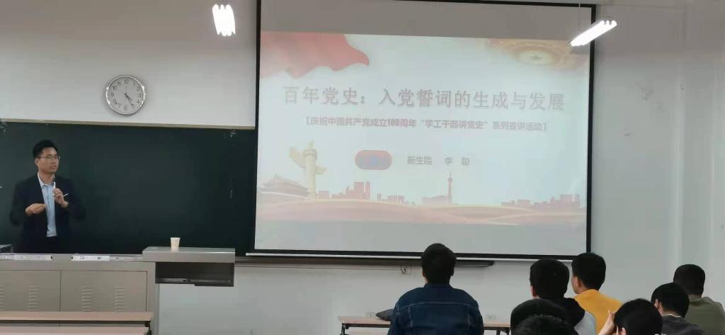开展了西安工业大学“学工干部讲党史”系列宣讲活动—《入党誓词的生成与发展》,此次讲座邀请新生学院辅导员李聪主讲、研究生第三、四党支部全体党员以及新发展的预备党员参加了本次活动。