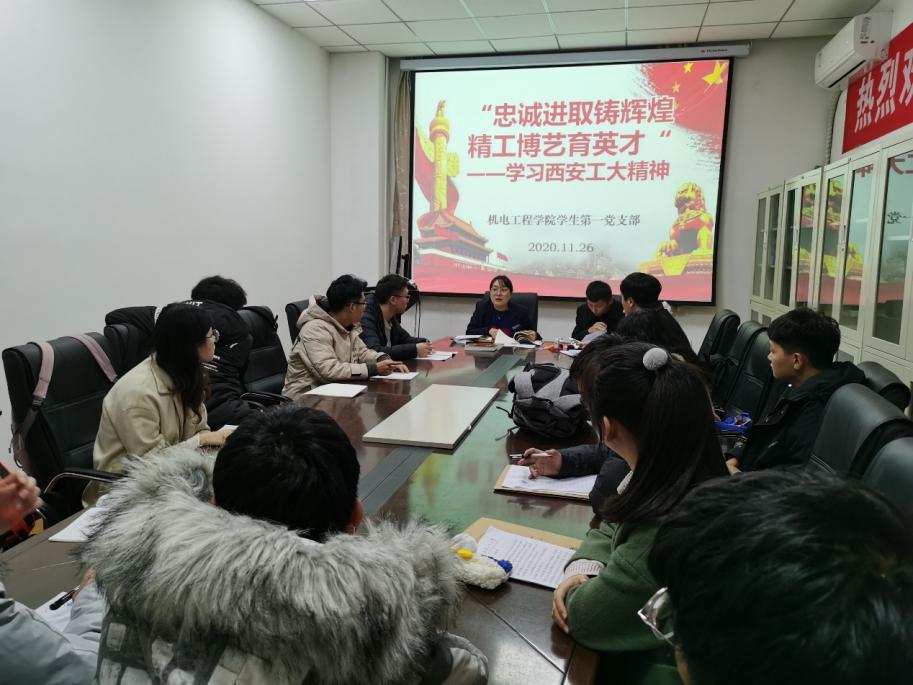 11月26日学生第一党支部全体成员在工二308召开党员大会,本次会议由学生第一党支部书记张岩同志主持。