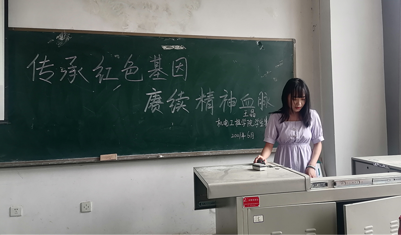 在学习完先进事迹后,王晶进一步解读了两名优秀党员同志努力背后的顽强毅力与党员精神,引导学生党员积极为师生办实事。同时与学生党员们分享了习近平语录中“让我们把红色基因传承好,把红色江山世世代代传下去”和“给陕西照金北梁红军小学学生回信”中的两段话。强调身为党员应当加强党史军史和光荣传统教育,多向英雄模范人物学习,热爱党、热爱祖国、热爱人民,用实际行动把红色基因一代代传下去。