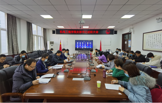 召开2021年支部书记述职大会,党委书记路金龙主持会议,同时邀请了赵鹏、李军宁、赫东锋三位教师代表做评委。