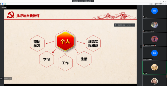 学生第五党支部在线上开展组织生活会。王熠凡主持本次活动,全体支部同志参加。