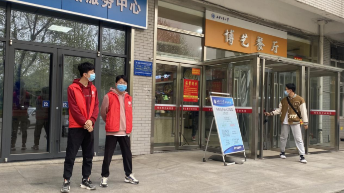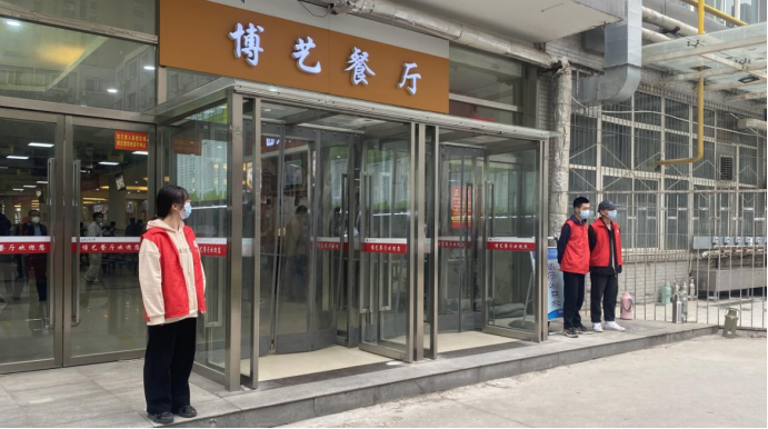学生第七党支部成员积极参与志愿活动,以实际行动彰显党员风范。学生党员站在前,15名同学在学校餐厅不同门口进行执勤,负责文明督导校园内学生遵守疫情防控要求,时刻提醒同学们佩戴好口罩、不扎堆不聚集,有序排队、文明就餐,做好个人防护,协助学校做好疫情防控宣传教育工作。在疫情防控中发挥先锋模范作用,干好每一件小事,处理好每个防控细节,用实际行动守护同学和教职工的健康和安全,成为我校防控疫情战斗第一线的鲜明的旗帜。