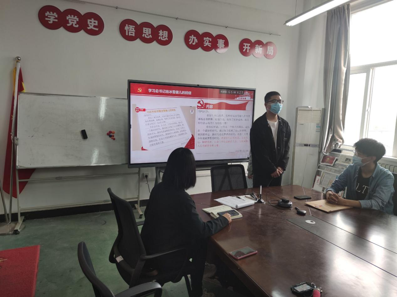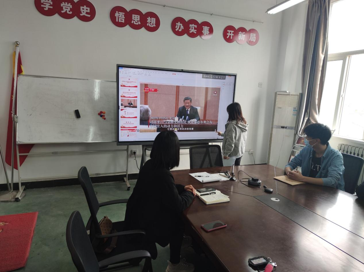 学生第七党支部在工二-405贯彻学习习近平总书记在北京冬奥会、冬残奥会总结表彰大会重要讲话。本次大会由支部书记唐雅莉同志主持。