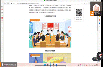 学生第二党支部在线上开展了“加强党支部标准化、规范化建设”主题党日活动。党支部全体正式党员和预备党员参加了本次主题党日活动,活动由党支部支部书记高珊主持,由党支部副书记李姗玲带领支部全体成员学习相关文件。
