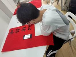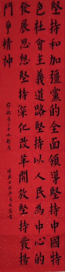活动中,几位热爱书法的同学来到作品展现场,尽情挥洒泼墨,现场为大家展现了书法的无穷魅力,同时向大家讲述了学习二十大的心得体会与自己对未来的规划与期望。