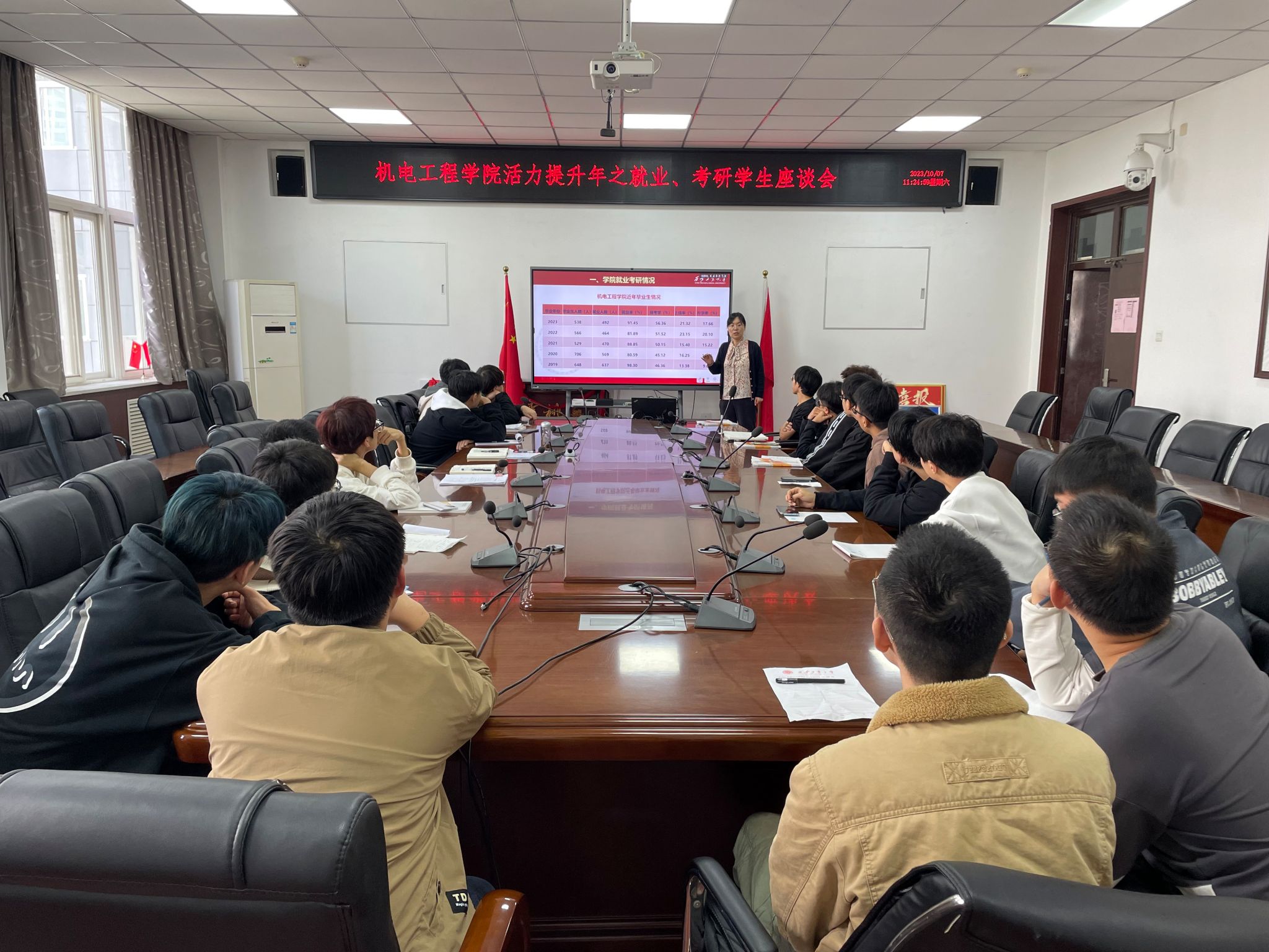召开就业、考研学生座谈会。会议由党委学院副书记姚敏茹主持,21级发展对象培训班学员参加。