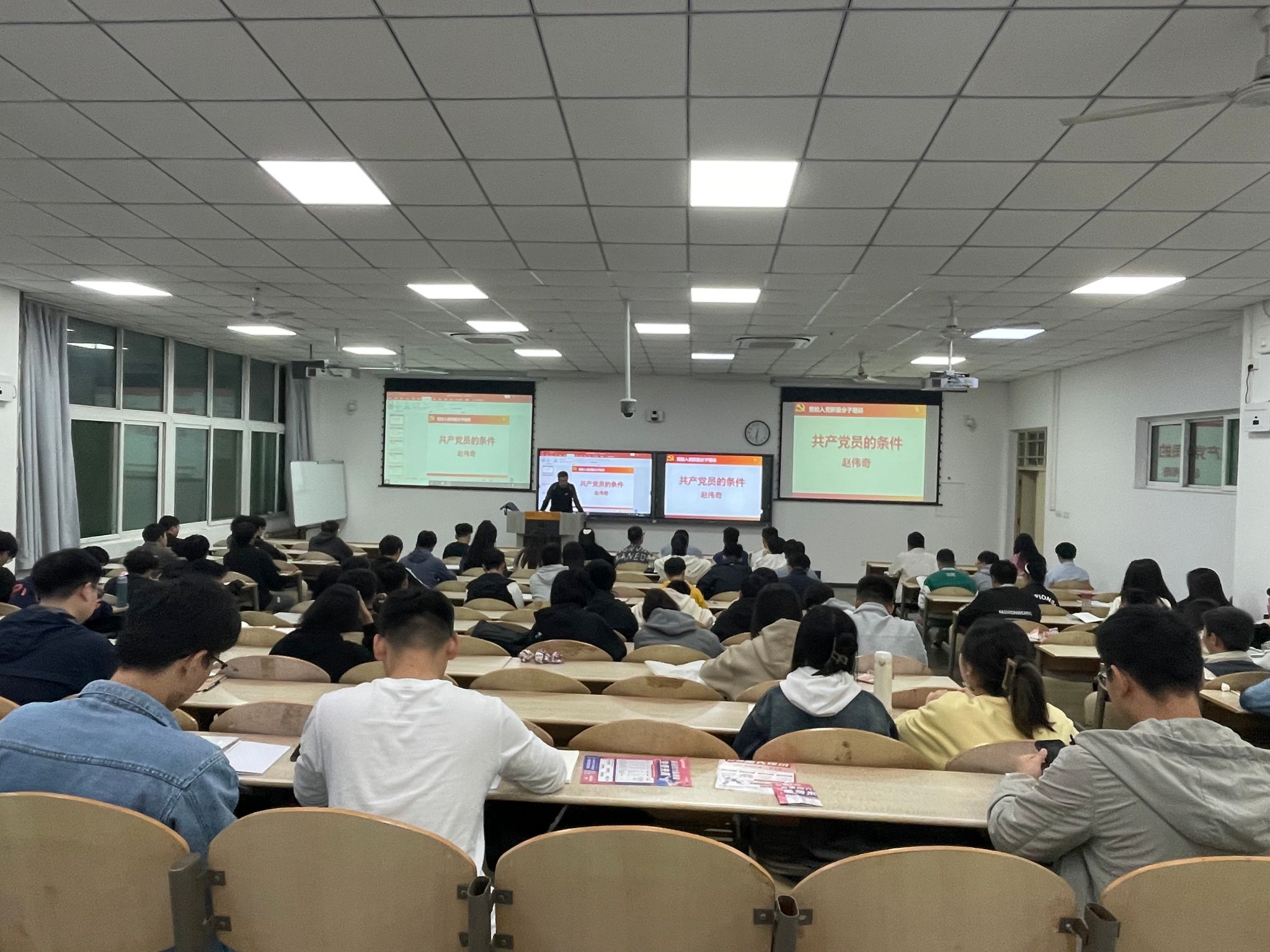 第67期积极分子培训班于教2-102开课,本次党课主题为“共产党员的条件”,由学校党委组织部赵伟奇主讲。