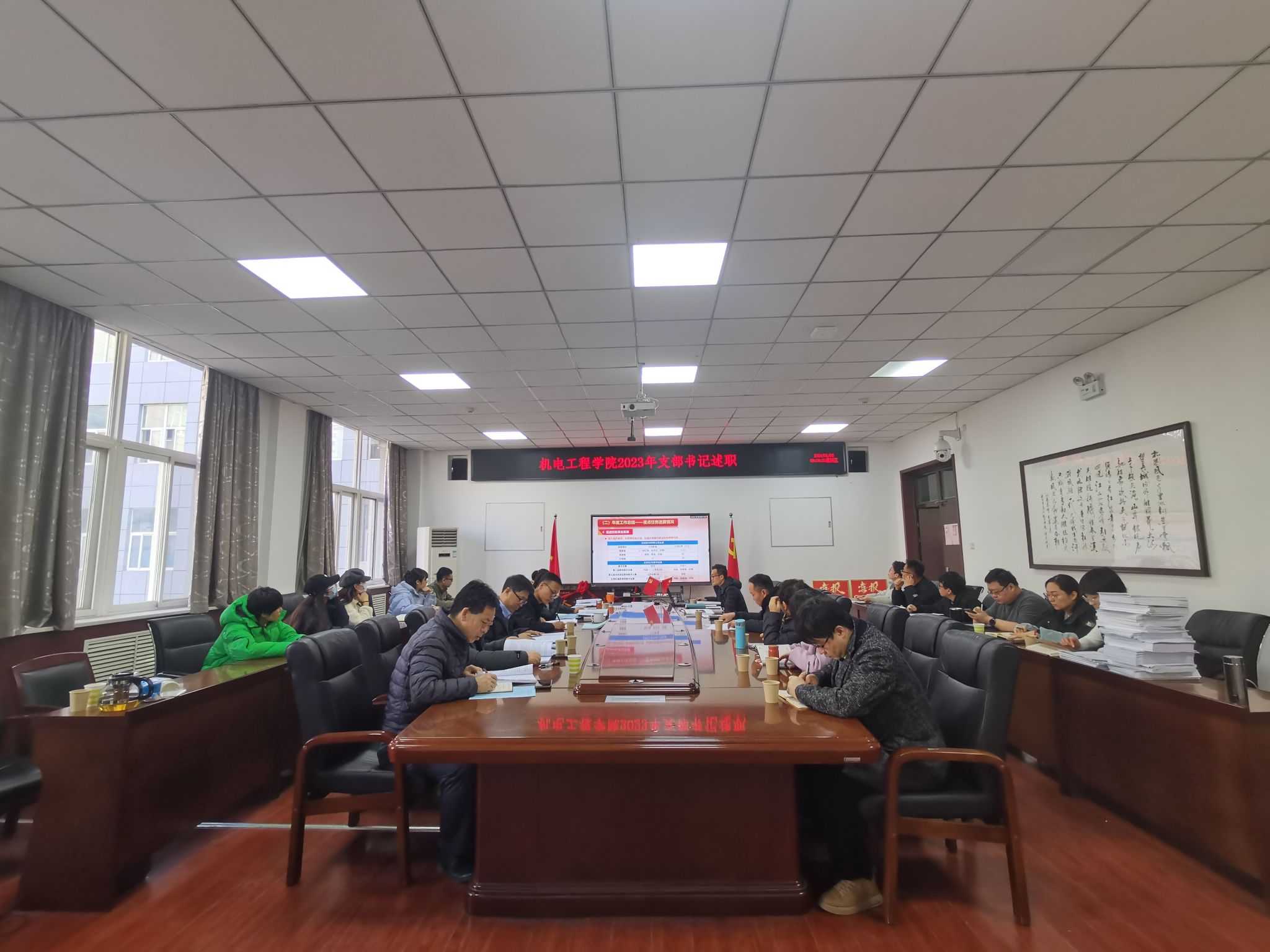 召开2023年党支部书记抓党建述职大会,学院党委书记程新峰主持会议,党委委员、支部书记及教师代表机械设计系张新运老师参加。