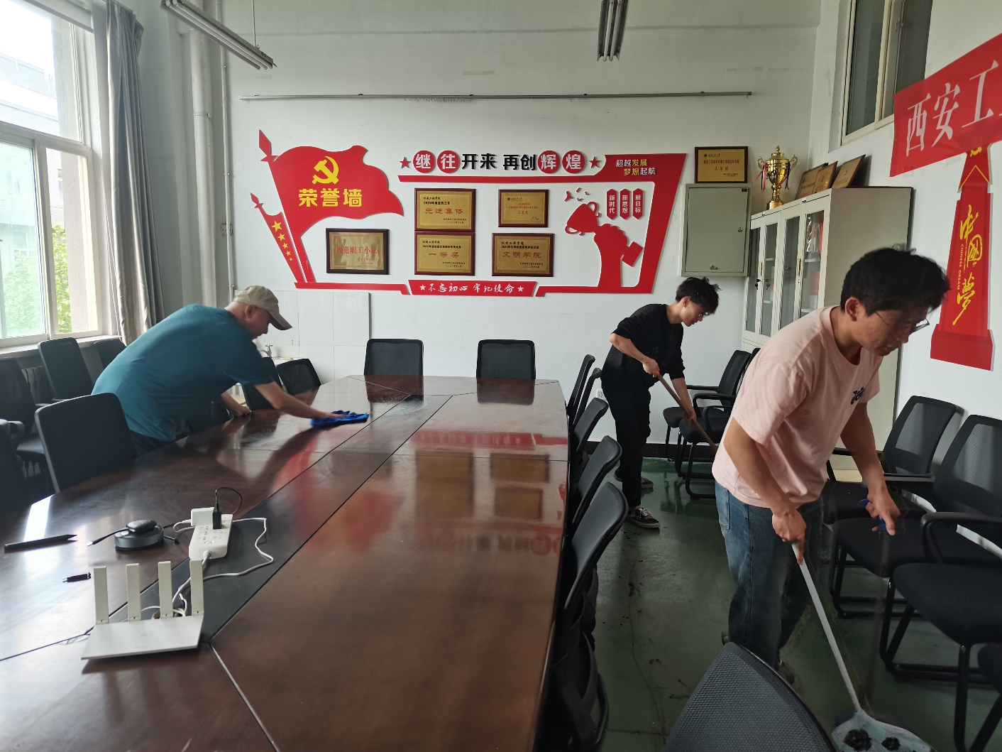 活动开始前,在教2楼3层集合,党支部副书记鲁一妠对活动任务进行了简短的讲解,说明清洁的重点和分工任务,确保每位同志知道自己的职责。活动期间,各党员被分配到不同的会议室进行打扫卫生。大家井然有序,以主动、积极的心态投入到自己所承担的劳动任务中,并仔细地擦拭桌椅表面,清除桌椅上的灰尘和污垢,最后清扫地面垃圾,用拖把拖地,确保环境整洁。在清扫过程中四五人一组分工合作、共同努力,致力于清扫干净每一个角落,不放过任何一处,保障了整个教室环境的干净整洁、为同学们提供了一个良好的学习环境。大家热情洋溢的工作状态,展现了党员积极向上、乐于奉献的精神面貌,充分体现了各党员不怕苦不怕累的优良精神。