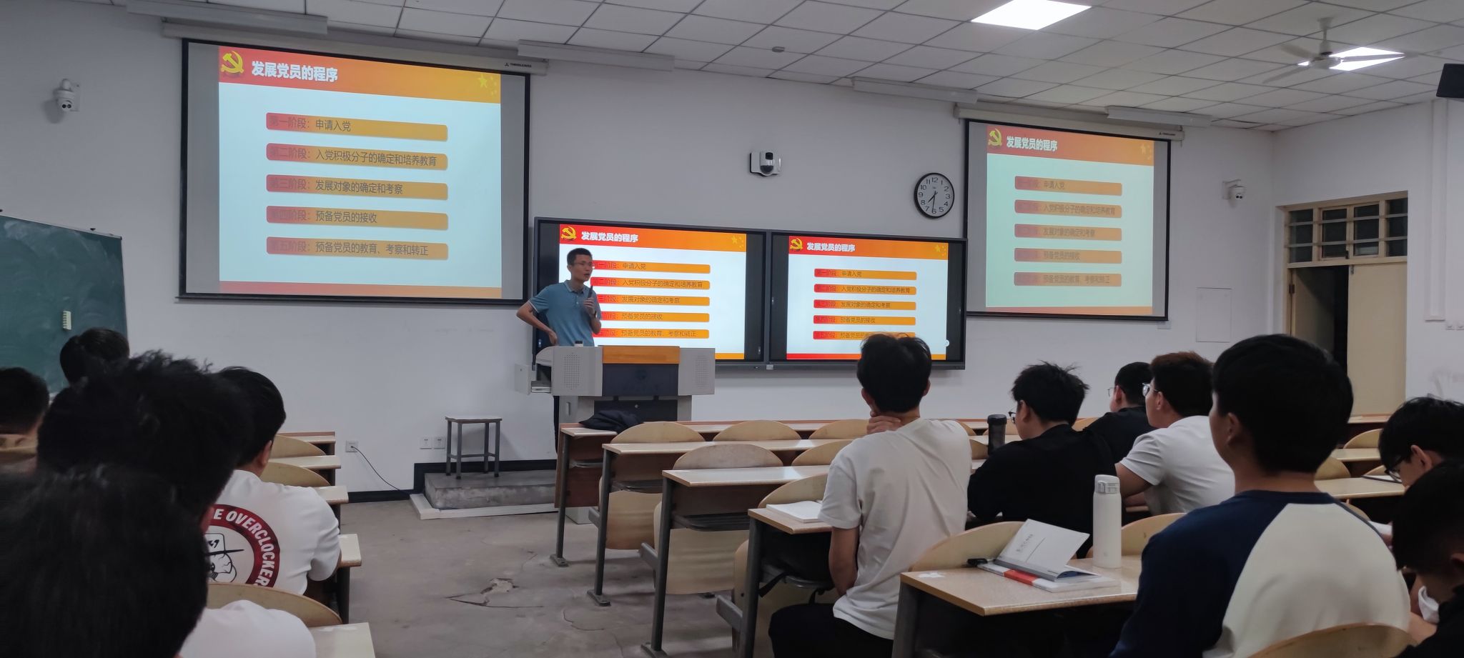 赵伟奇老师从共产党员的条件、共产党员要有政治自觉性、党员发展程序三个方面进行讲述。强调党员是有共产主义觉悟的先锋战士,党员要全心全意为人民服务,党员永远是劳动人民的普通一员。牢记党员的义务,合理使用党员的权利。共产党员要有政治自觉性,坚定不移的贯彻执行党的基本路线,坚定不移的执行党在社会主义初级阶段的基本纲领。鼓励同学们要加强自身的党性教育,提高自己的思想觉悟,争取早日入党,要坚定不移听党话、跟党走,怀抱梦想又脚踏实地,敢想敢为又善作善成,立志做有理想、敢担当、能吃苦、肯奋斗的新时代好青年,积极投身于建设中国特色社会主义现代化强国的事业中去。