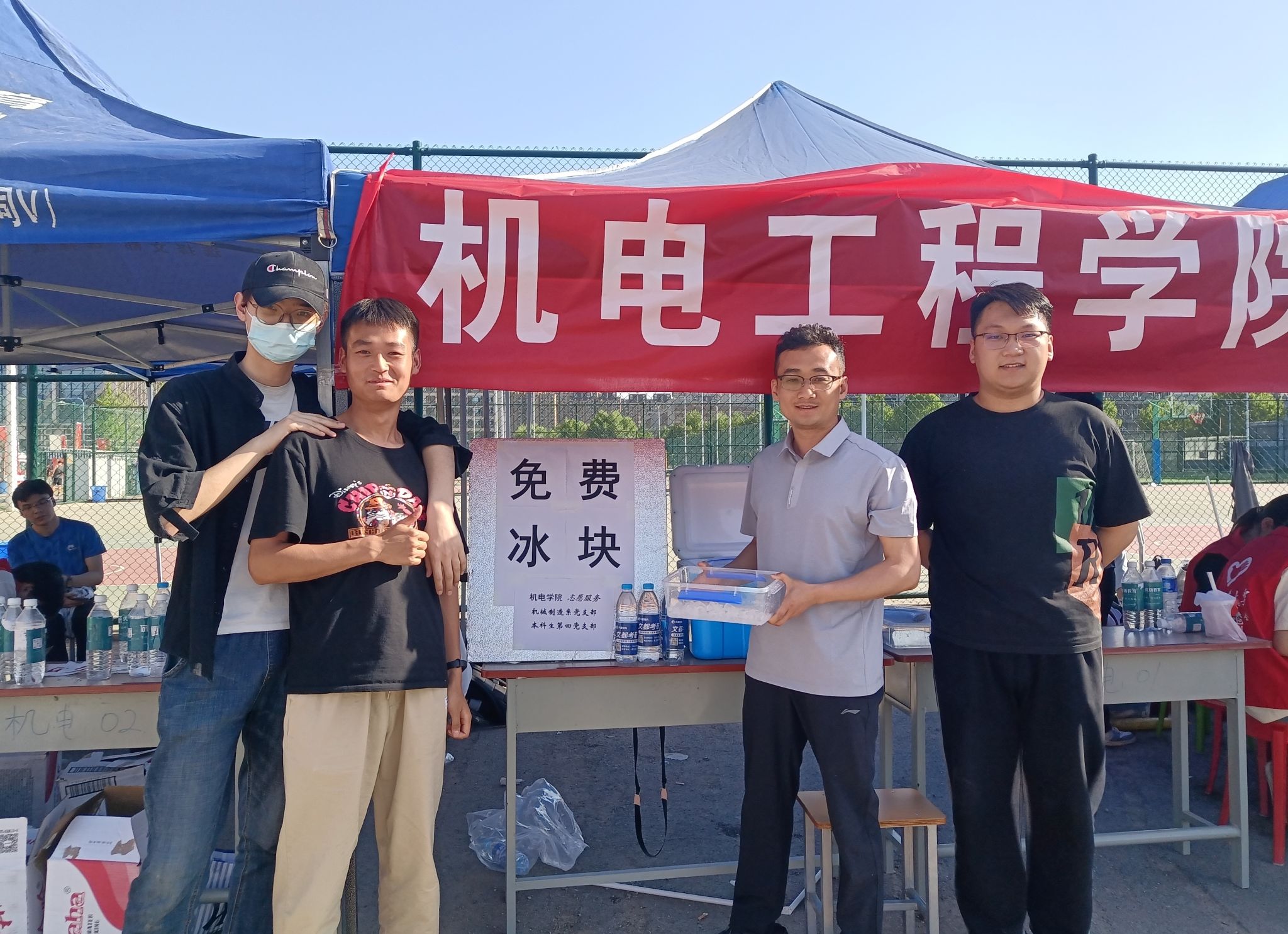 体育场热浪沸腾,运动员激情高涨,4月25日,西安工业大学2024年春季运动会在一片热烈而又充满活力的气氛中拉开帷幕。为充分发挥党员的先锋模范作用,助力运动会后勤保障工作,以学院党委“五个一”安排为契机,机械制造系党支部和本科生第四党支部联合开展“运动会送清凉”志愿活动。