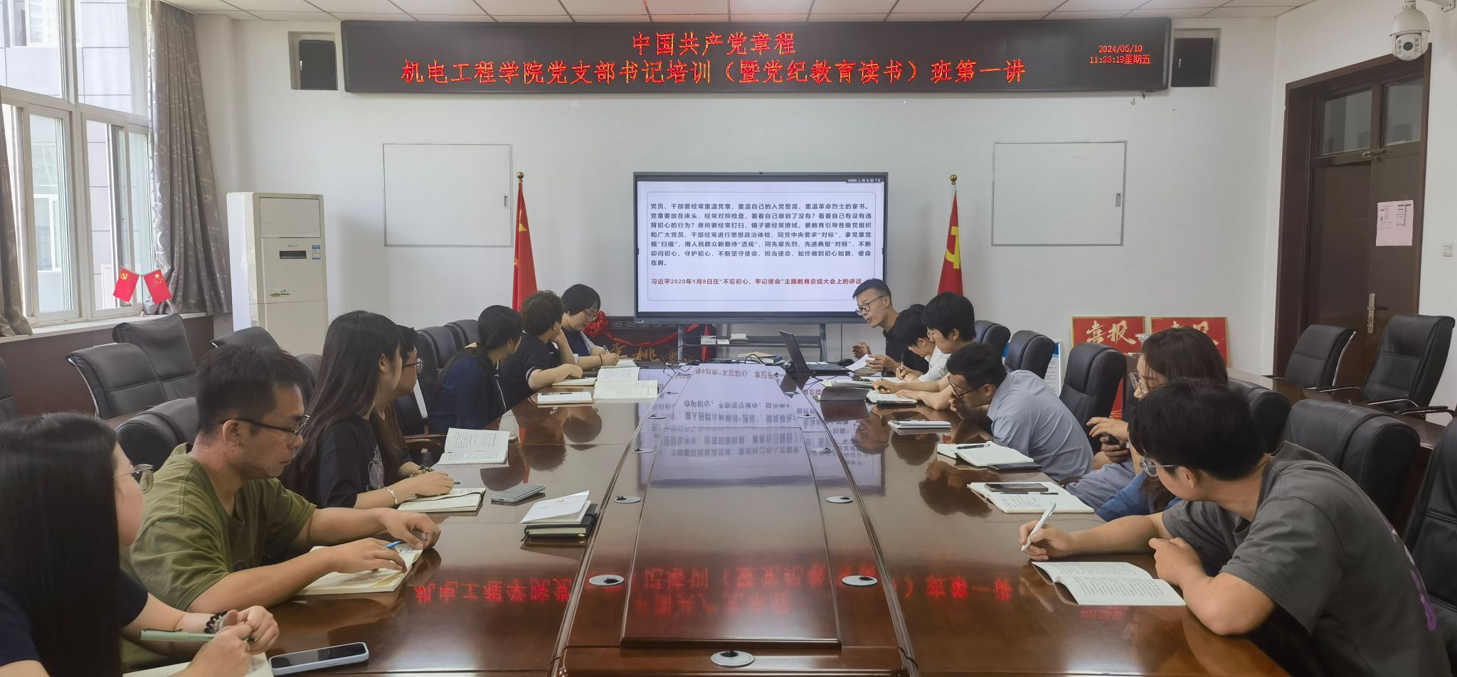 于5月10日开办党支部书记培训暨党纪学习教育读书班,开班仪式由学院党委副书记、纪委书记姚敏茹主持,学院党委委员、理论中心组成员参加。