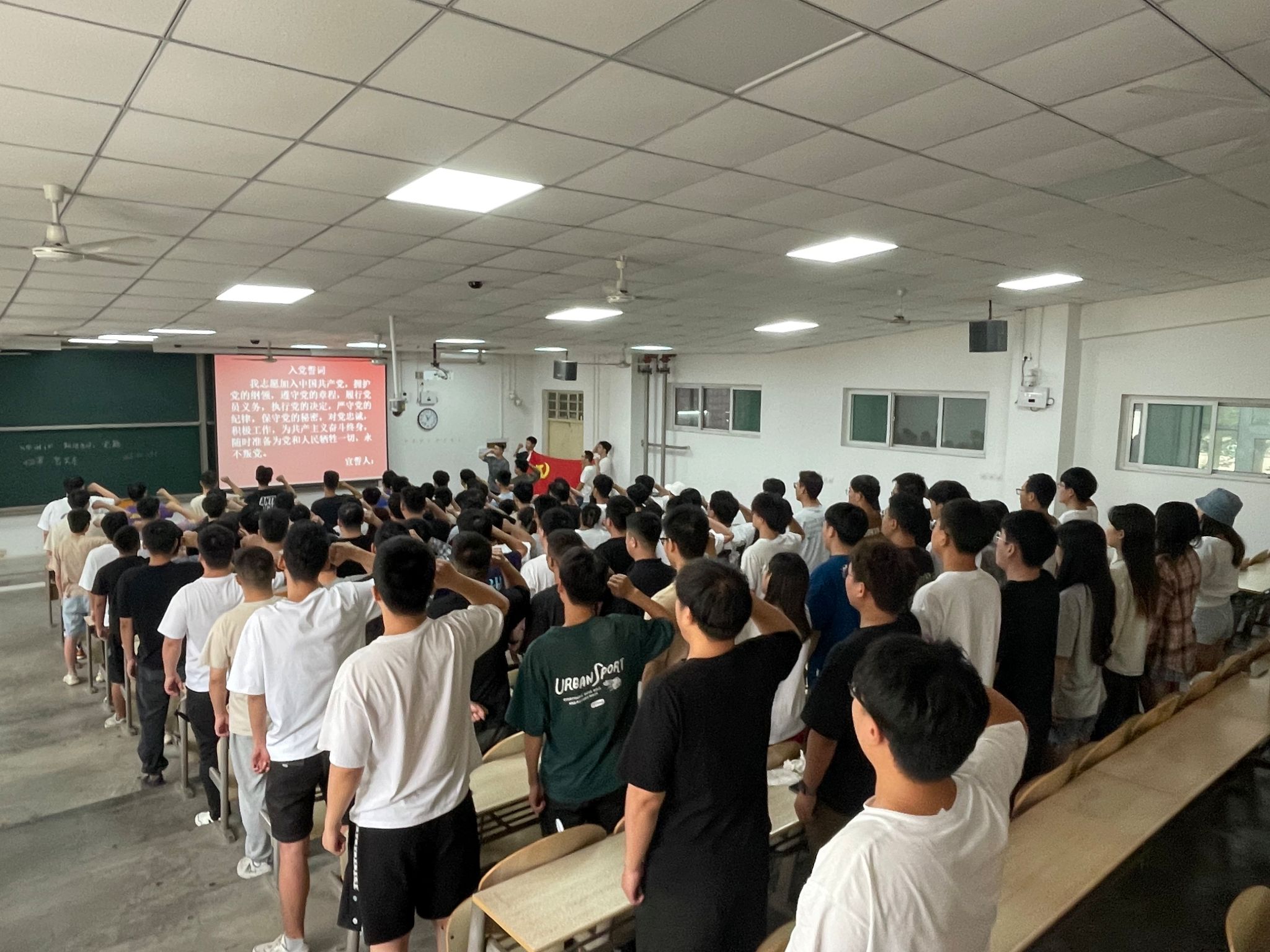 由本科生第一党支部党员闫张磊带领全体毕业生党员庄严宣誓,重温入党誓词,再次深刻领悟作为一名共产党员的责任感和使命感。