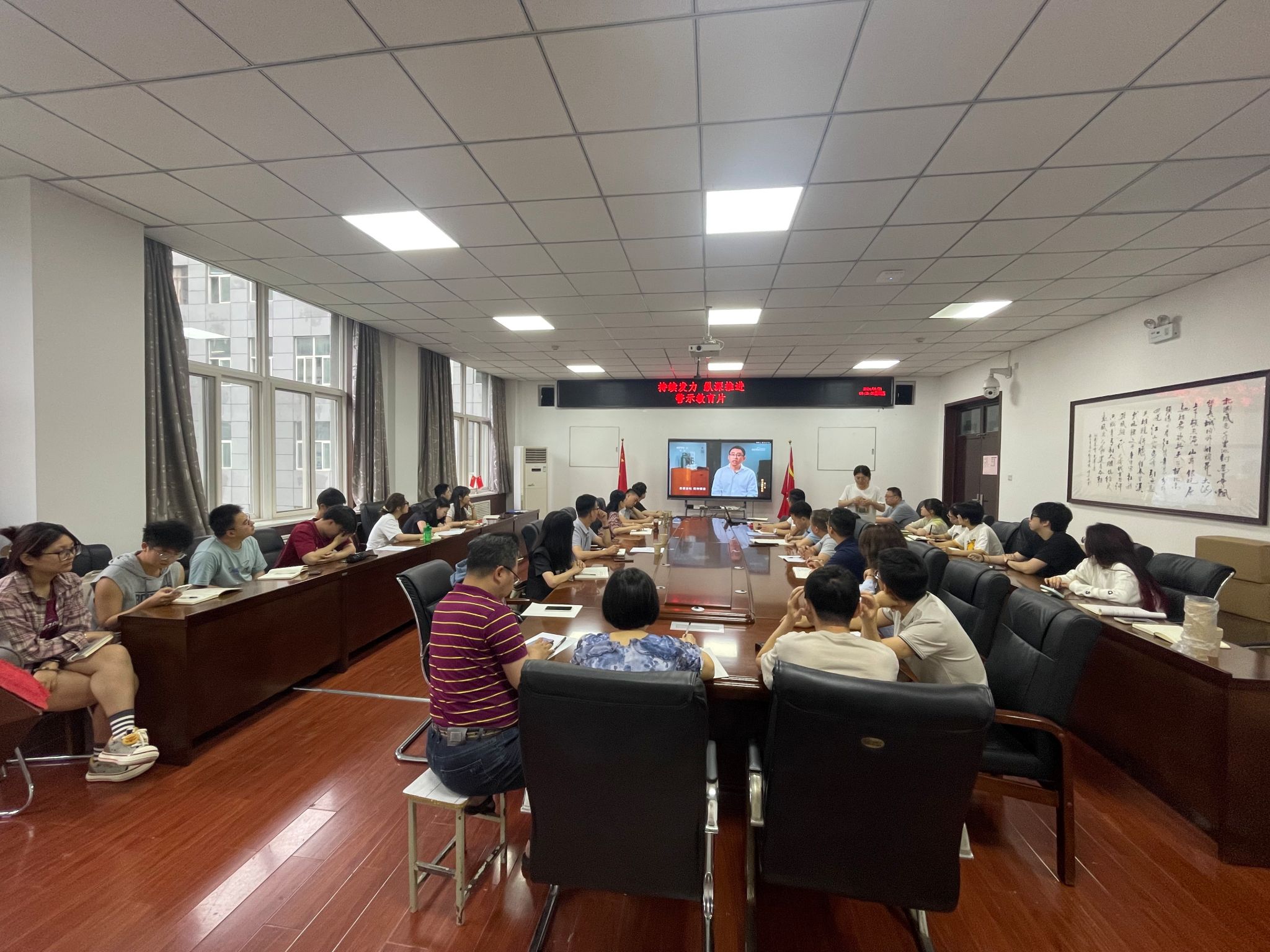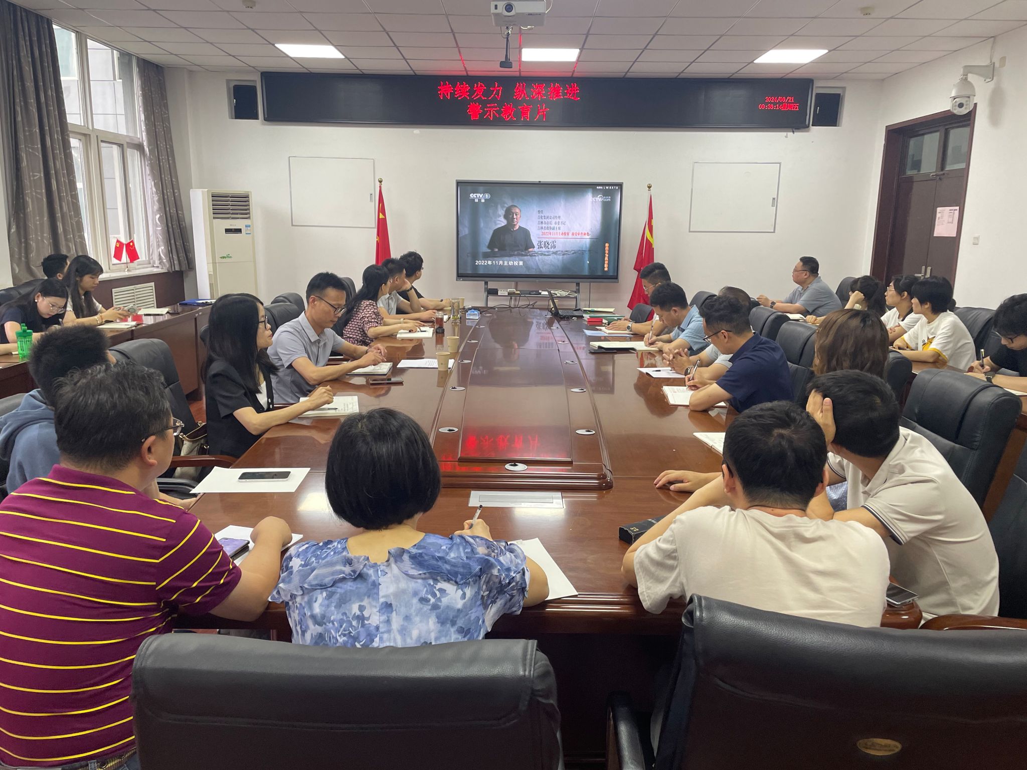 组织观看中央纪委国家监委宣传部与中央广播电视总台联合摄制的反腐电视专题片《持续发力 纵深推进》之吉林省政协原副主席张晓霈案,学院党委委员、理论中心组成员、党支部书记参会。
