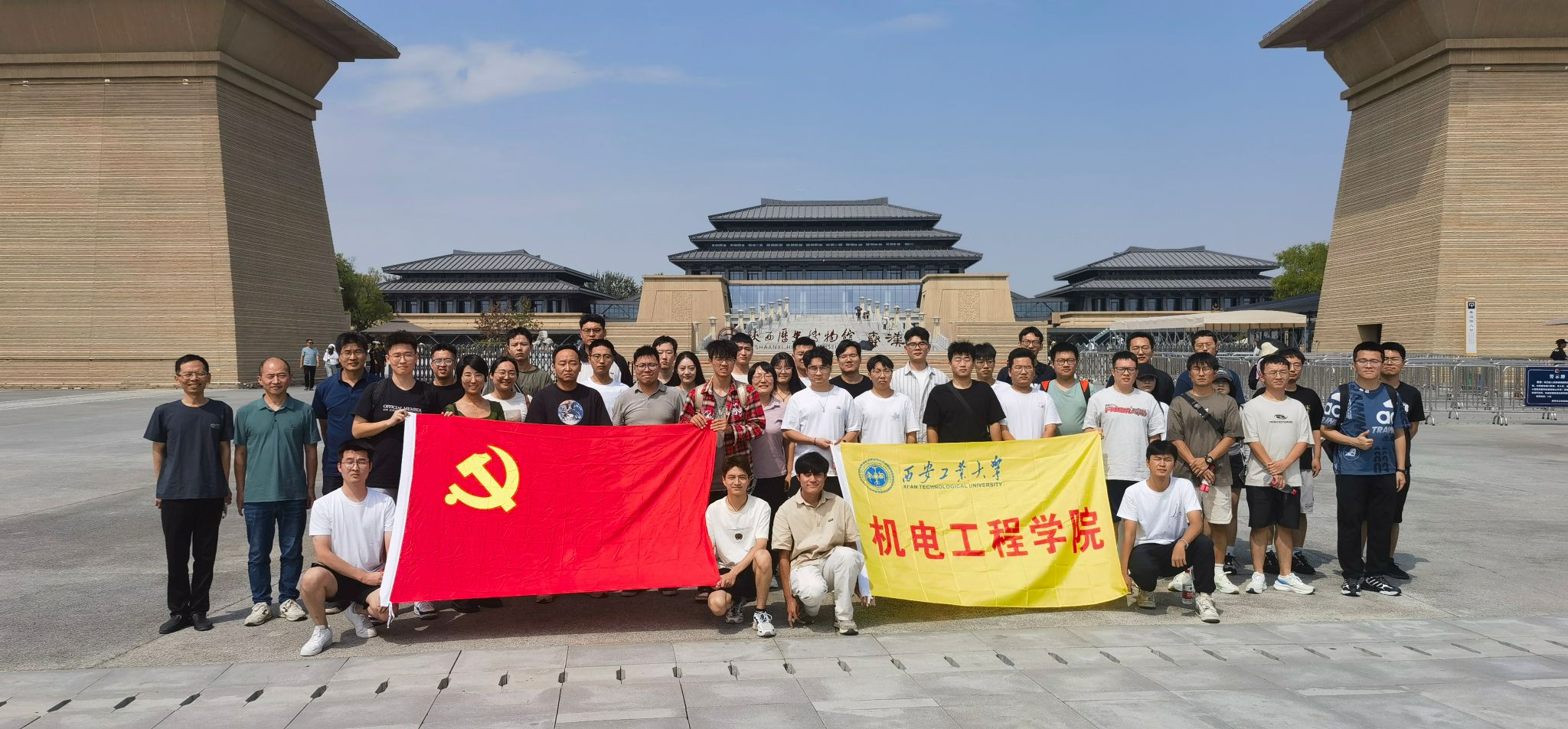 随着夕阳的余晖洒满博物馆的长廊,本次的参观学习活动也接近了尾声。师生们在博物馆门前留下了合影。本次活动,不仅提升了师生对于秦汉历史文化的了解,加强了师生对于中国传统文化的自信,增强了师生历史责任感和使命感;而且有效增进了党员教师与学生的交流与互动,帮助同学们在生活和学习中获得更多的自信心、上进心及归属感。