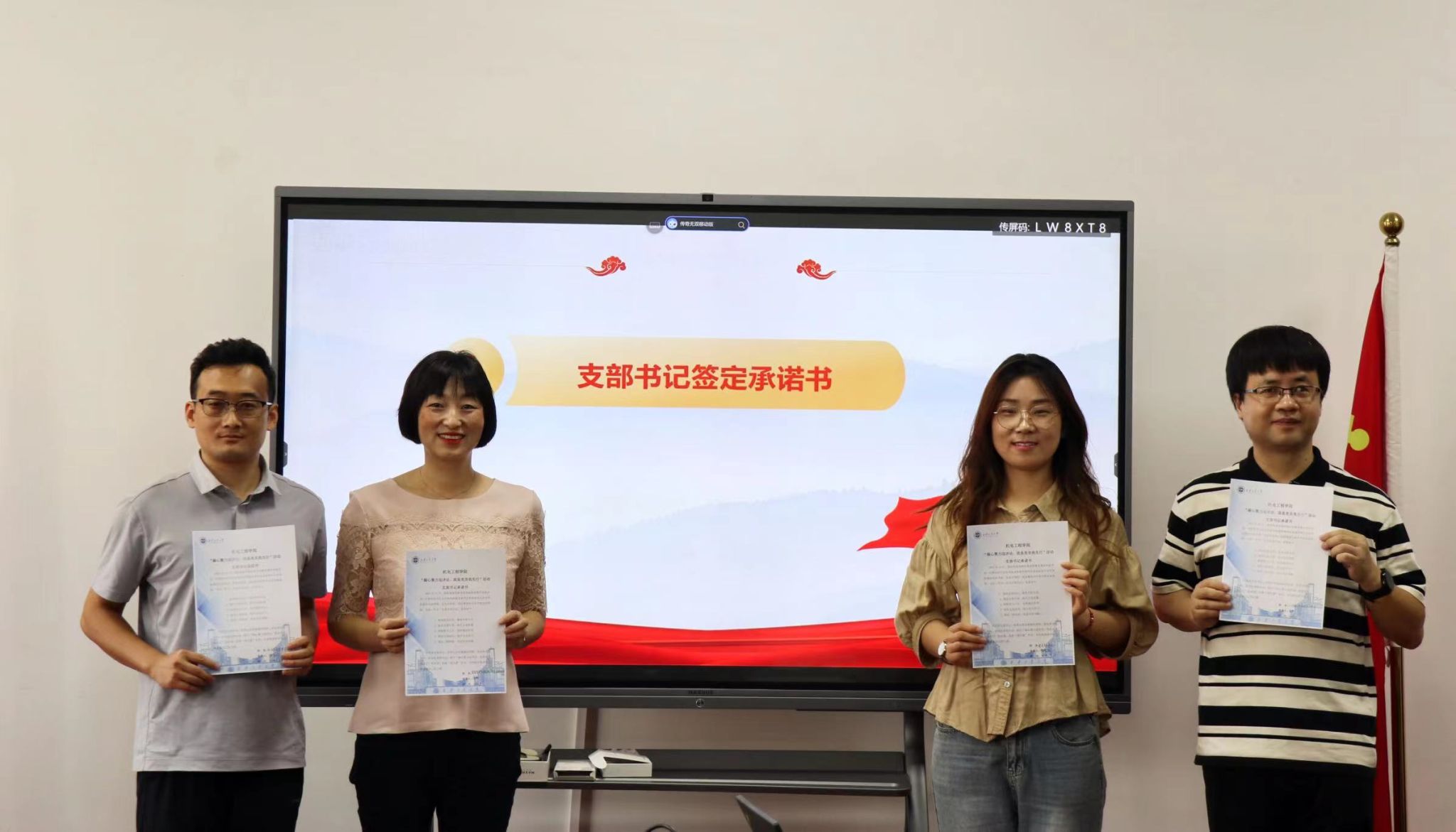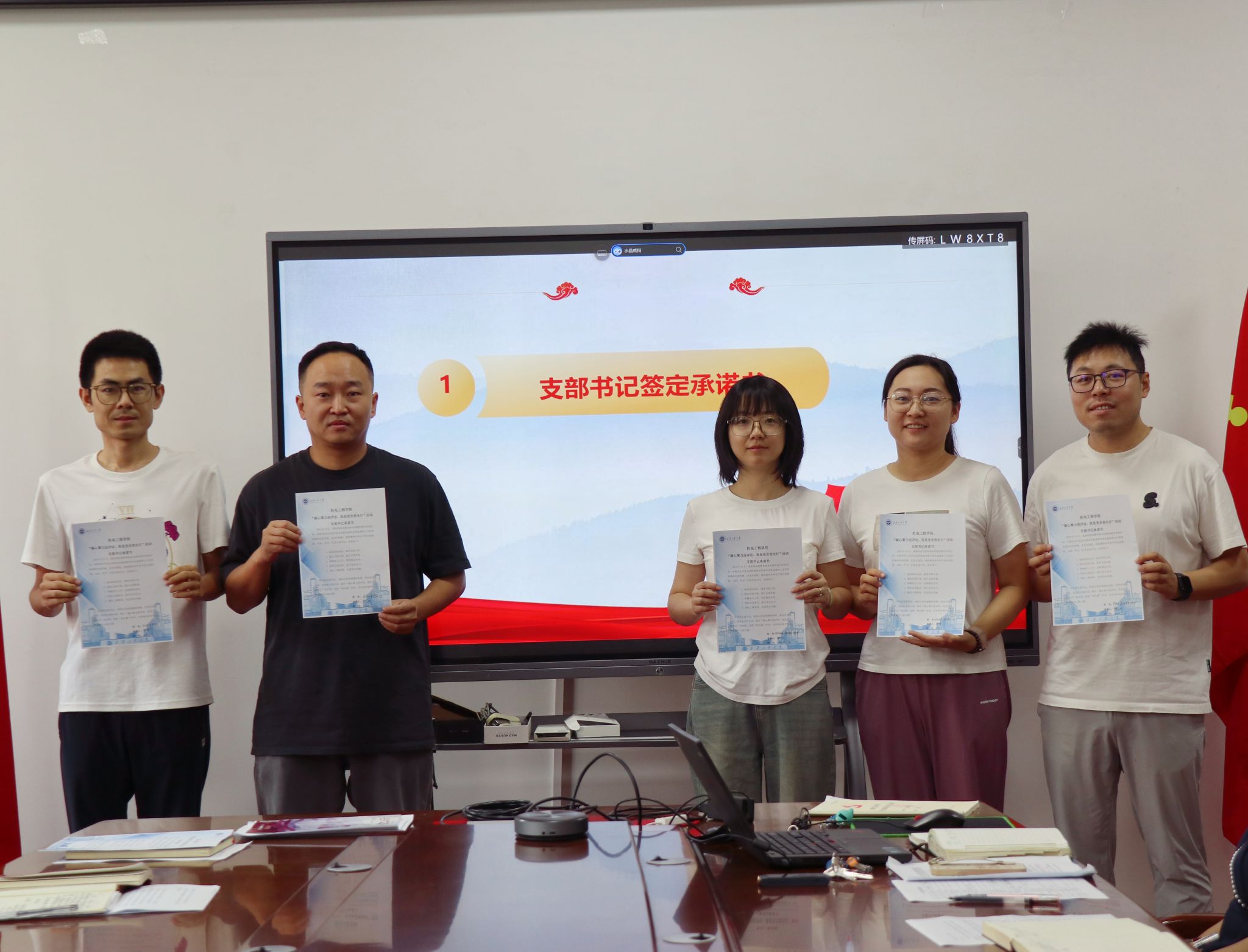仪式上,17名党支部书记现场签订“凝心聚力迎评估,我是党员我先行”活动承诺书,学院支部书记代表张耿和文勃分别发言。他们表示在思想上高度重视,全力配合学校和学院开展各项审核评估工作,发挥好党支部的战斗堡垒作用,全身心投入审核评估工作中。