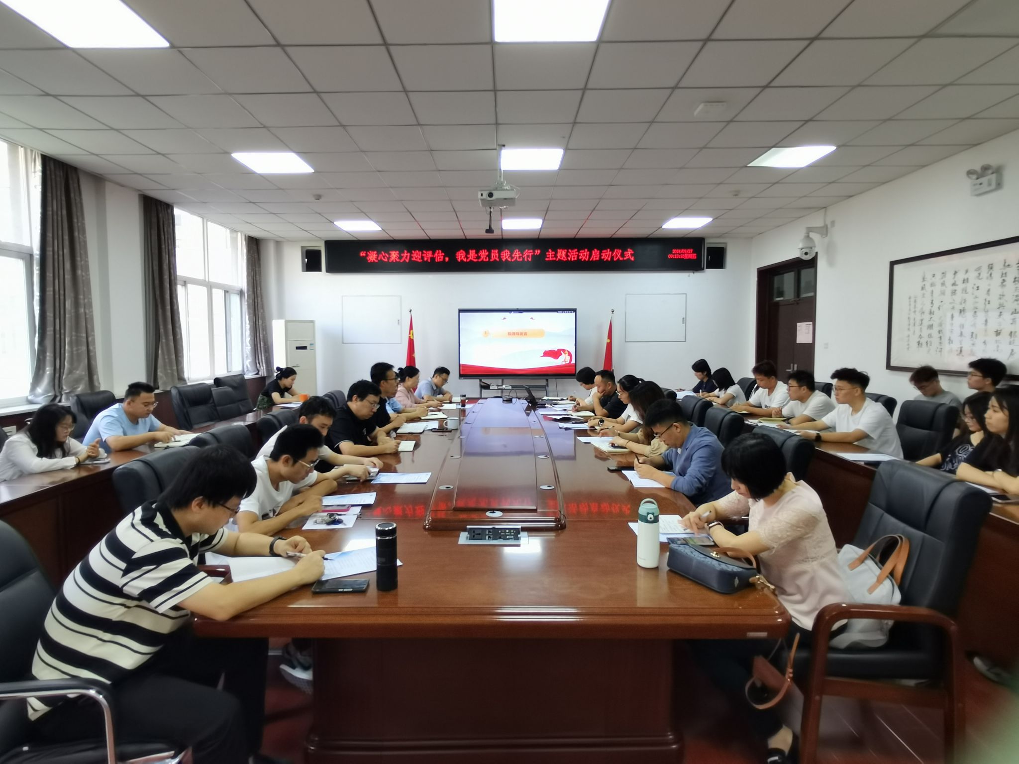 “凝心聚力迎评估,我是党员我先行”活动于9月27日启动。学院领导班子成员、各支部书记、支委委员40余人参会。仪式由学院党委副书记、纪委书记姚敏茹主持。