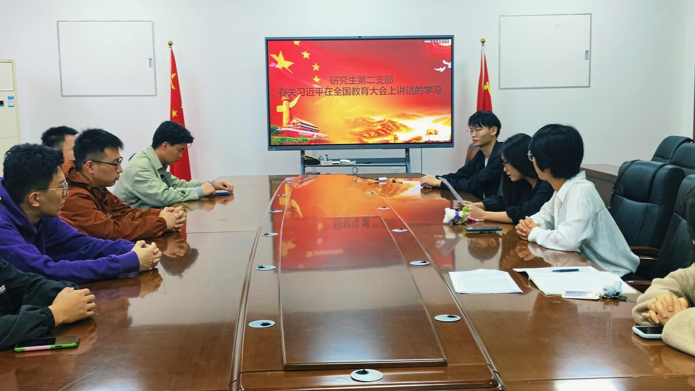 10月25日上午,研究生第二党支部开展了关于习近平总书记在全国教育大会上讲话精神的学习会议。党支部书记唐雅莉与党支部全体学生党员共同参与了此次会议,会议由党支部副书记许露洁同志主持。