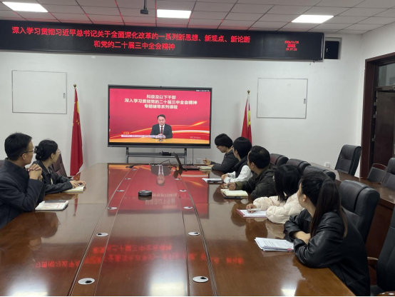 组织科级以上干部参加学习贯彻党的二十届三中全会精神研讨班,会议由学院党委书记程新峰主持,学院党委副书记、纪委书记及科级以上干部参加会议。