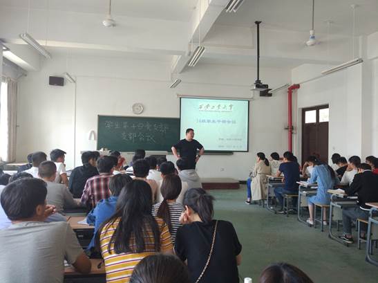最后,由学生党总支书记薛鹏对毕业生党组织关系转移事项进行详细讲解,并热心的对班干部反映的工作中的各项问题进行综合解答。薛书记时而严肃时而风趣幽默的解答不仅清晰明了,更充斥着对同学们前途的关怀,为的是同学能够顺利走向社会,实现自己的梦想,去为社会建设添砖加瓦。