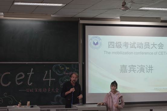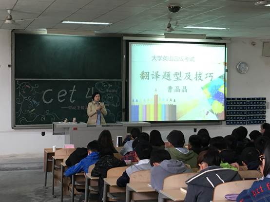 大会伊始,主持人介绍嘉宾并致开场词。在同学们的掌声中,薛鹏老师和唐雅莉老师分别宣读了学院对四级英语成绩的奖励制度,丰厚的奖励制度轰动全场,瞬间点燃了同学们学习英语的热情。随后,赵鑫老师和刘宝青老师分别从四级卷面要求和四级对于学生以后工作生活的重要性给予了详细介绍;田瑜老师将四级作文的评分划分档次以及评分标准进行了说明,总结了“多背多看多替换”口诀;岳靖凡老师主要强调在答阅读理解时要把控时间,将问题分类,勾画关键词,从文中找出处;曹晶晶老师从翻译的基本技巧讲到英汉表达习惯,对其评分标准的解读让同学们如醍醐灌顶;Terence外教则认为在学英语时要营造语言的氛围,并非是生硬翻译,而是要让自己直接去理解。最后,来自不同学院的四位优秀学长、学姐给大家分享了自己的四级学习经验和答题技巧,让在场的同学受益匪浅。
