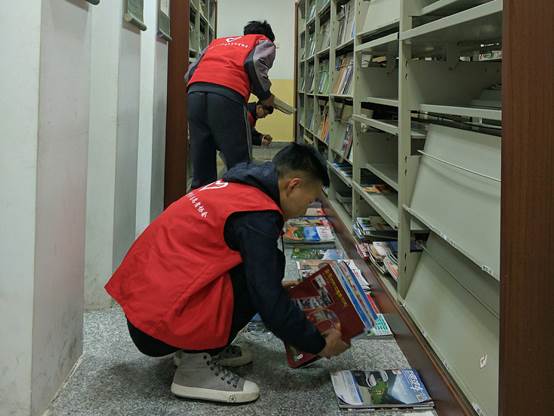 烟绿依稀春意早,杏红明媚晓风香。密密细雨无法阻挡志愿者们的脚步,瑟瑟寒风没有熄灭志愿服务的热情。早上8:30,志愿者们于学校图书馆门口准时集合,活动顺利开始。到达市图书馆后,志愿者们根据工作安排有序地开始了各自的工作:负责借还书籍的志愿者们在图书馆工作人员的耐心讲解下,以微笑迎接每一位读者;负责图书整理及分类的志愿者们认真地核对每项书籍的分类,以整齐美观展现给读者;负责打扫书架卫生的志愿者们则更是心思细致,不放过任何一丝灰尘。任务不同,所属岗位亦是不同,但大家均认认真真地完成着己任,确保志愿服务的高质量。