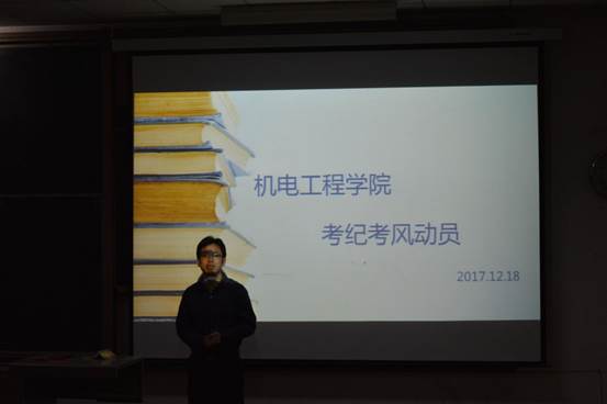 大会伊始,张晖老师对大会内容作简单介绍,并宣布大会正式开始。他指出,本学期已临近尾声,希望全体学生为考试做好准备,把握好最后的复习阶段,有学习方面的问题,务必抓紧时间向老师请教。在考试的前期多复习,在考试中保持良好的心态。考试期间,从自身做起,无论何种考察方式,都应该端正态度。同时,张晖老师着重强调了考试纪律:严禁携带手机,严禁作弊,重视考纪考风,并为大家细致深入地剖析了作弊带来的不良影响。最后,张晖老师对本次大会进行总结,希望大家能够严肃考风考纪,认真备考,诚信答卷。
