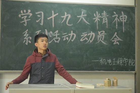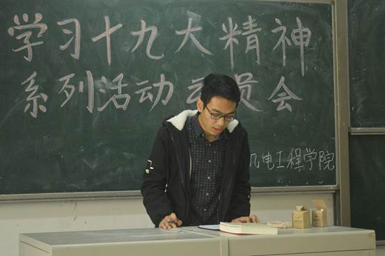 认真学习宣传贯彻党的十九大精神系列活动做了详细的的安排,并提出相应要求:各班团支部要从原原本本认真学原文做起,认真学习党的十九大报告和党章,着重把握“关于在全校团组织集中开展认真学习宣传贯彻党的十九大精神的通知”文件中的10个方面,深刻领会十九大精神内涵;团干部要带头学习、完整领会党的十九大精神,当好团员青年的表率,深入基层开展宣讲;基层团组织要开展专题学习会,结合自身实际,学习贯彻党的十九大精神。学生会主席陈鑫和团委副书记刘浩浩分别对开展十九大相关活动及各班团支部开展团日活动做出了相应安排。
