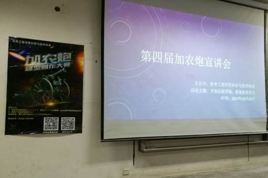 科学与技术协会主办的第四届机电科协“加农炮”制作大赛第二次宣讲,在未央校区教二211成功举办。出席本次宣讲会的主讲嘉宾是西安工业大学电子信息工程学院研究生导师王泽民副教授,参加本次宣讲会的成员有机电科协全体成员和部分参加第四届“加农炮”比赛的参赛队员。