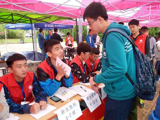 参与本次新生接待工作的有2017级辅导员薛鹏,院团委书记唐雅莉等老师,院团委副书记刘浩浩等学生干部。