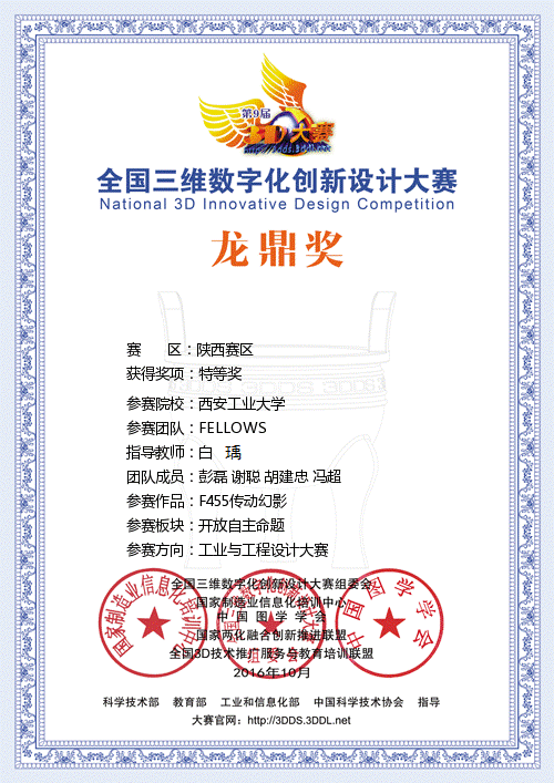 近日,我校在第九届全国三维数字化创新设计大赛(3D大赛)省赛中喜获多项佳绩,共取得最佳网络人气奖1项,陕西赛区特等奖2项,一等奖1项,三等奖3项的优异成绩。
