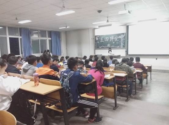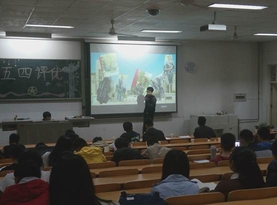 五四评优答辩大会在教1-201举行。出席大会的嘉宾有团委副书记胡俊杰、学生会主席何俊、副主席庞博和刘立春、青协主席张雪、科协副主席张凯文以及各位部长。
