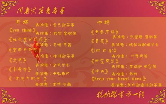 愿奉献给同学们难忘的夜晚,将会永远铭记在我们心中。