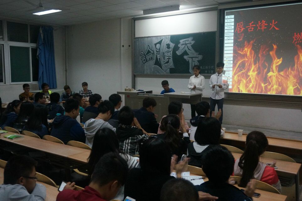 学习部主办的“唇舌烽火,燃在金秋”辩论赛总决赛于教1-301教室正式拉开帷幕。学生会主席及各部部长们担任了此次决赛的评委。