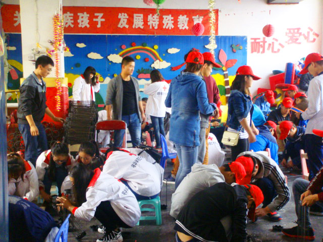 2015年10月17日,伴着爽朗的天气和秋日的累累硕果,西安工业大学机电“阳光”青协的志愿者们在青协副主席庄其鑫、实践部部长南荣昌和副部长魏嘉斌的带领下一同前往西安市心心特幼残疾儿童学校开展志愿服务活动。