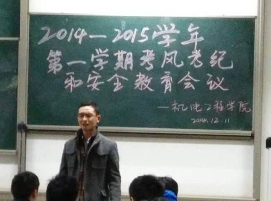 首先,黄彦军老师向同学们强调了诚信考试的重要性,对广大同学进行考纪教育,引导同学们树立诚信意识,严格遵守考试纪律,杜绝考试违纪和舞弊现象,创建优良考风。其次,黄彦军老师围绕交通安全、人身财产安全以及如何提高安全意识等几个方面依次展开讲解,并结合实际案例,深入浅出的总结出有关提高大学生安全意识的具体方法与对策。黄彦军老师进一步作了总结,要求从自身做起,严于律己,树立诚信意识,并期待同学们顺利通过考试,取得好成绩。