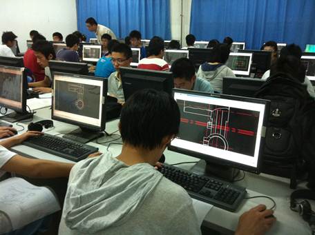 比赛开始后,参赛选手携带制图工具准时到达比赛地点,在工作人员分发试题后,他们认真细致地作图,纷纷将自己扎实的绘图功底体现于图纸、计算机上。尺规、铅笔等在选手们手中仿佛一把把利剑,考试试题很快便迎刃而解;CAD制图的选手们则熟练地使用各种命令如庖丁解牛般地将图形一一攻破。历时两个小时的比赛,赛场秩序井然,处处洋溢着一片丰收的气氛。