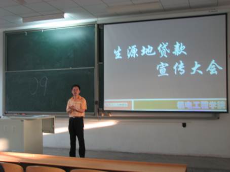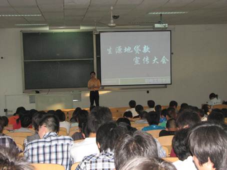 大会开始后,张老师首先对今年生源地贷款在政策上的调整和变化作了整体解说。他强调,今年与往年不同的是,贷款人只有被评为校贫困生才有资格。针对此规定影响下出现的一些其它问题,张老师建议未满足条件的同学可以先办理相关手续,以避免后期时间仓促或不足问题,等待与学校协商解决。