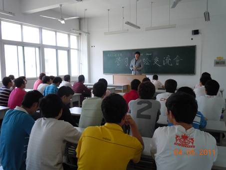 201154日下午3:00,足球投注网站 “十佳大学生”侯志松,07级优秀学生姜晓龙,已拥有两项专利、获得第四届机械创新设计大赛陕西赛区一等奖、考入西安工业大学攻读硕士学位研究生的张耿,于未央校区教A412教室为足球投注网站 10级机制专业同学做了一场精彩的学习经验交流会。