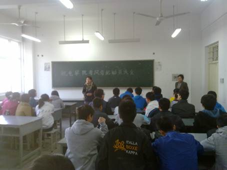 大会开始后,王里艳老师就考风考纪问题发表讲话。王老师指出:考试中如有作弊,将取消其毕业证、学位证;希望大家在考前的日子里,全力复习准备,认真对待考试,不要发生作弊现象。王老师还语重心长地列举了前几届学生中发生的考试违纪处理事件,并通知大家成绩单将在成绩公布后邮寄回各自家中,希望以此督促大家加紧复习。